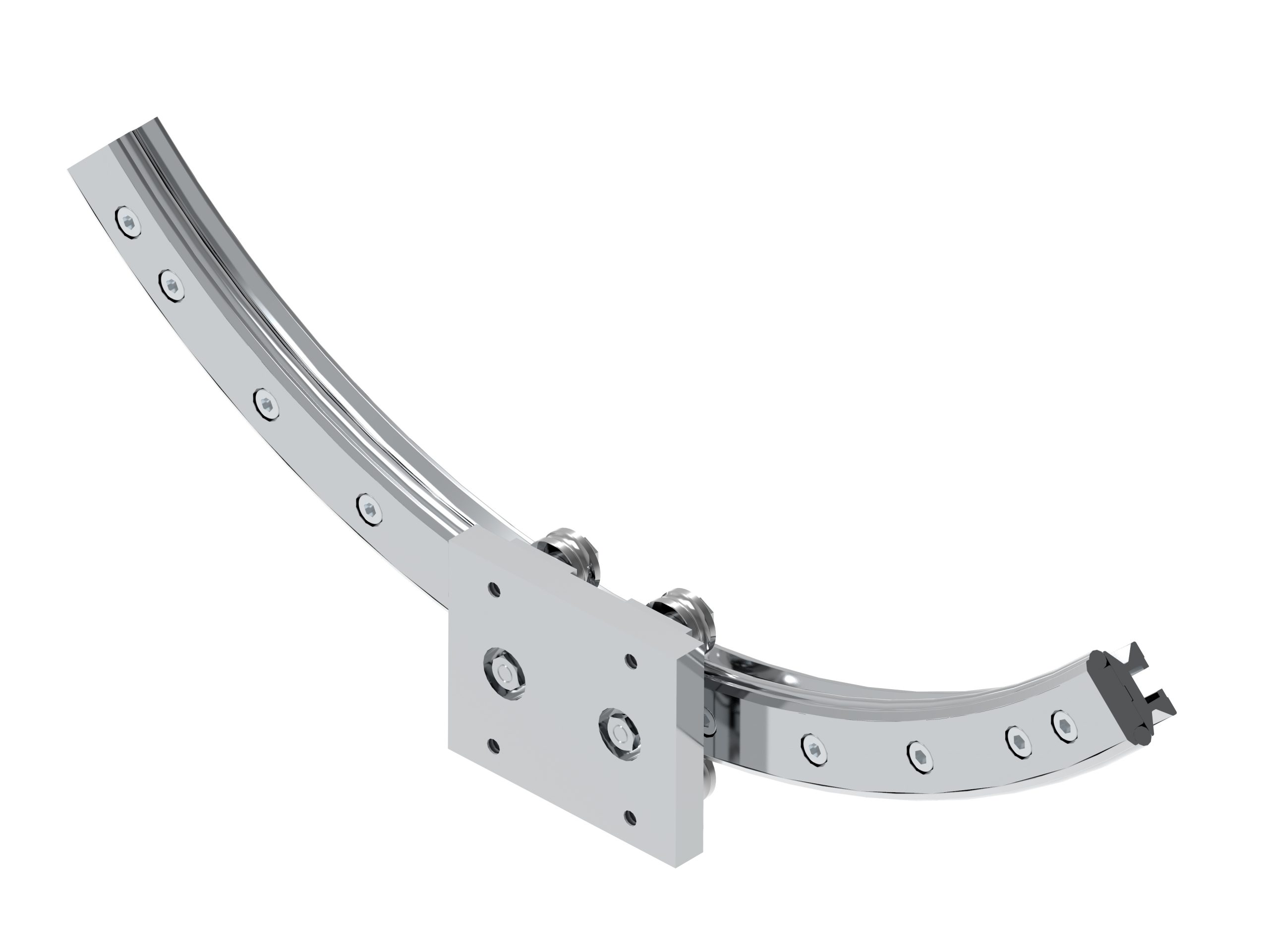 Nicht immer muss mit einer Linearführung nur der direkte Weg von einem Anfangspunkt zu einem Endpunkt realisiert werden. Der Transport erfolgt oftmals in einer nichtgeradlinigen Bewegung bis hin zu einem Kreislauf. Mit der geradlinigen Führungsschiene in Kombination mit den Bogensegmenten sind den Bewegungsrichtungen kaum Grenzen gesetzt.